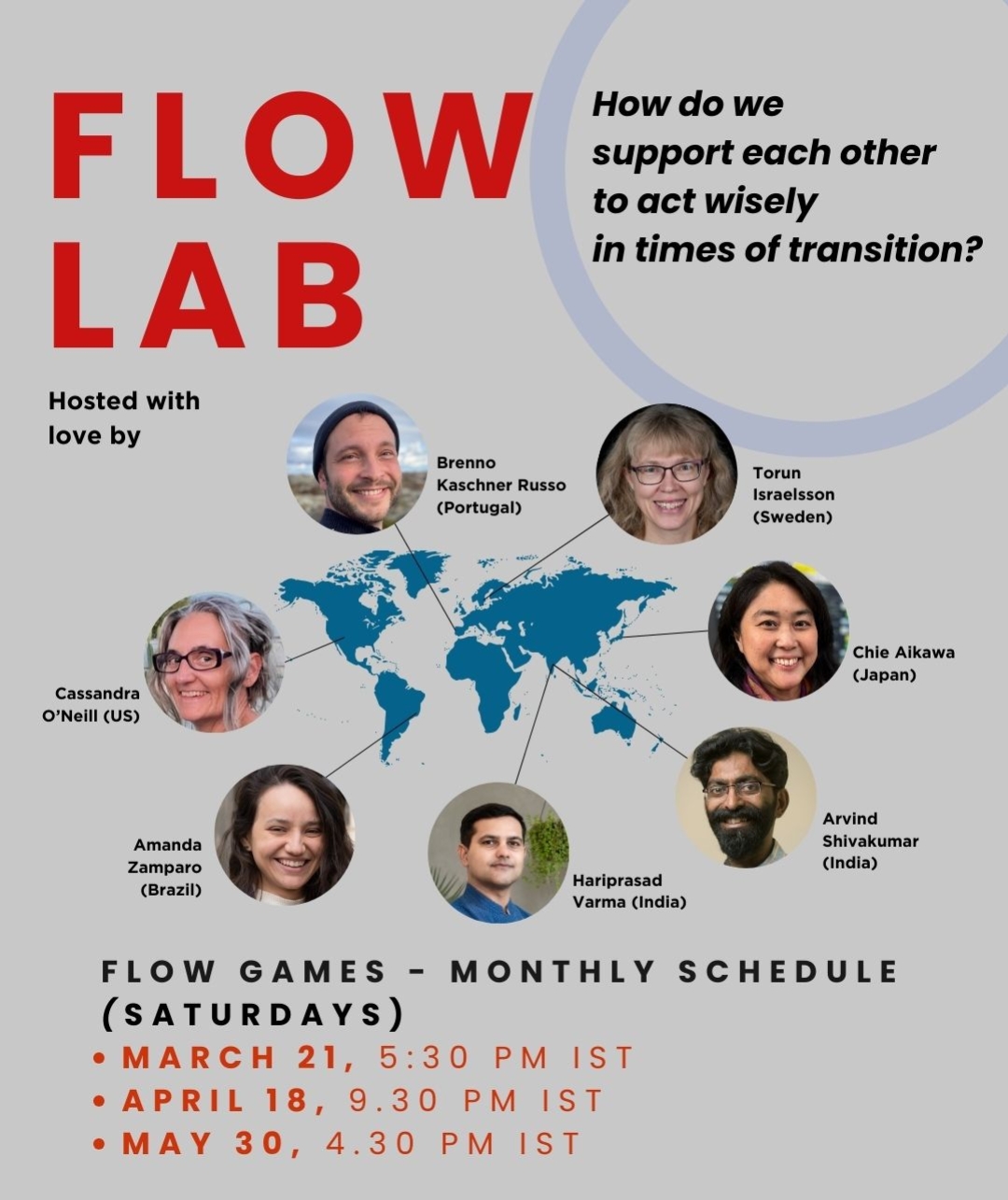 This is designed as a monthly Flow Game series from March to May 2026. For these three Flow Game sessions, you are invited to bring a personal question that you wish to explore with the support of others.